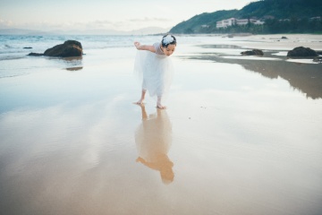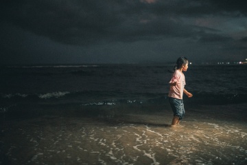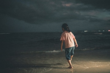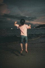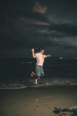 北方小女孩第一次看到大海。虽然到的时候天色已晚,但是任然掩盖不住激动的心情。这将是一生抹不掉的记忆。